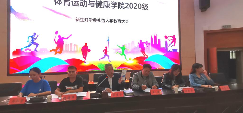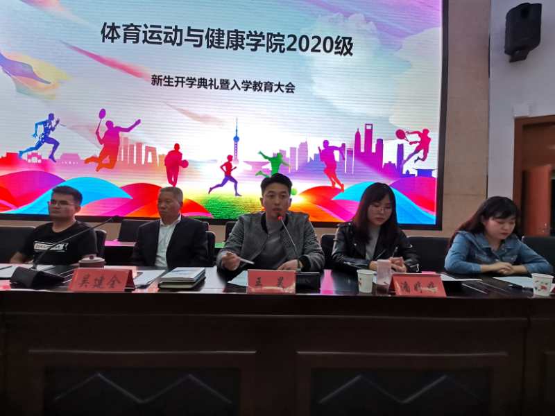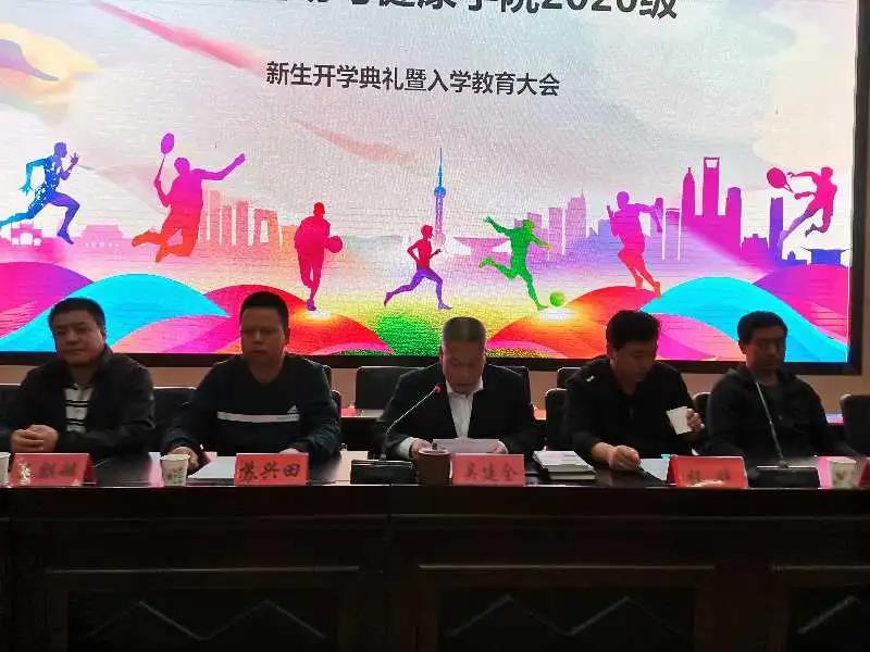 春华秋实,桂果飘香。为欢迎来自甘肃、广东、天津等19个省市(自治区)的215名新同学加入yl23411大家庭,9月23日晚在二号报告厅隆重举行2020级新生开学典礼暨入学教育大会。公司党总支副书记吴建全,副经理程晖,副经理苏兴田,运动训练系系主任王麒麟,社会体育指导与管理系系主任龚晨太,体育教育系系主任高海利,公司团委书记王昊,办公室副主任马慧琼,2020级各班班主任,教师代表段文义,辅导员以及2020级全体员工参加,典礼由公司党总支副书记吴建全主持。