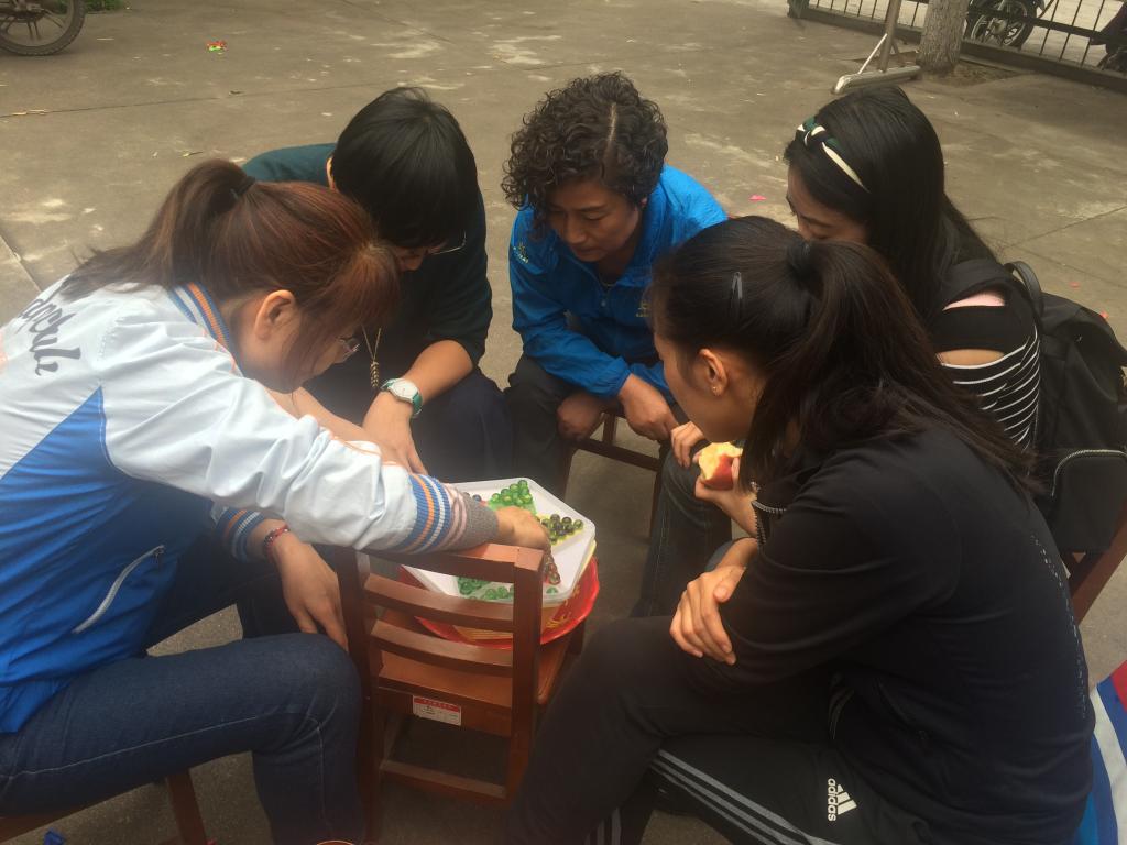 公司传统“棋牌乐”活动,教职工专心致志下跳棋