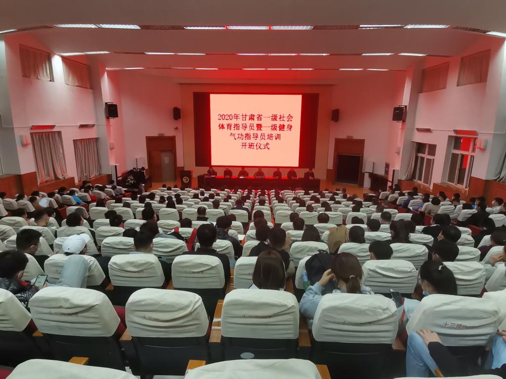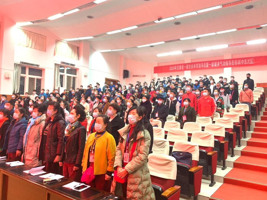 为了贯彻落实《全民健身计划(2016-2020年)》,加强我省社会体育指导员队伍,11月5日晚,2020年甘肃省一级社会体育指导员暨健身气功一级社会体育指导员培训班(中东片区)在二号报告厅隆重开班,甘肃省社会体育管理中心副主任马晓云,甘肃省社会体育指导员协会副会长、天水市麦积区体育发展中心主任李永明,公司党总支副书记吴建全,副经理程晖、刘仁憨、苏兴田出席开班典礼,本次开班典礼由甘肃省社体中心健身气功部部长刘志宏主持。