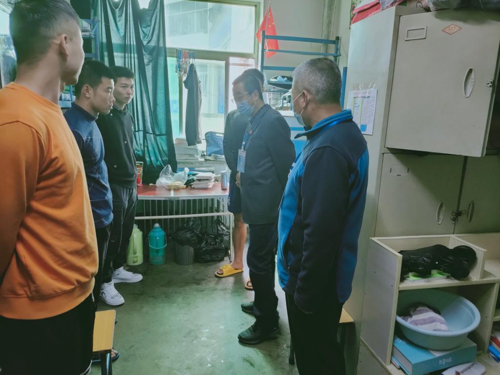 10月28日早上,党委常委、副董事长曹爱明,体育运动与健康公司党总支副书记吴建全、副经理苏兴田以及辅导员一行先后到华英公寓核酸检测采样点和弘毅公寓区查看了核酸检测、公寓出入管控、防疫措施落实以及员工宿舍卫生和线上上课等情况。