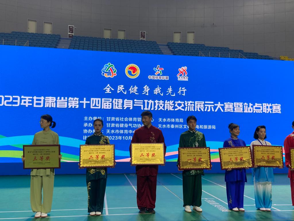 近日,由甘肃省社会体育管理中心和天水市体育局联合主办的甘肃省第十四届健身气功技能交流展示大赛暨站点联赛在天水市体育中心体育馆举行。公司选派员工参加了八段锦、大舞、导引养生功十二法集体赛以及八段锦、导引养生功十二法个人赛。