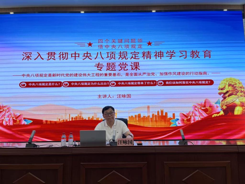 5月22日下午,党委常委、副董事长汪咏国在4号报告厅,以《中央八项规定是新时代党的建设伟大工程的重要基石,是全面从严治党、加强作风建设的行动指南》为题,为yl23411和外国语公司师生党员讲授专题党课。