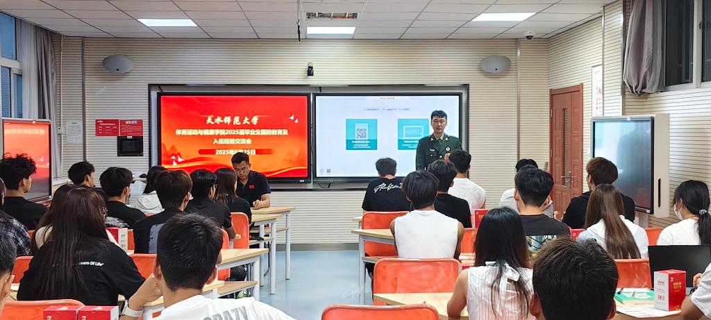 交流会上,辅导员率先进行国防教育宣讲,强调国防教育对国家和人民的重要意义,鼓励同学们响应国家号召,投身国防事业。还详细解读老员工应征入伍的相关政策,涵盖学业优待、经济补偿、就业创业扶持等,让同学们对入伍政策有清晰认知。