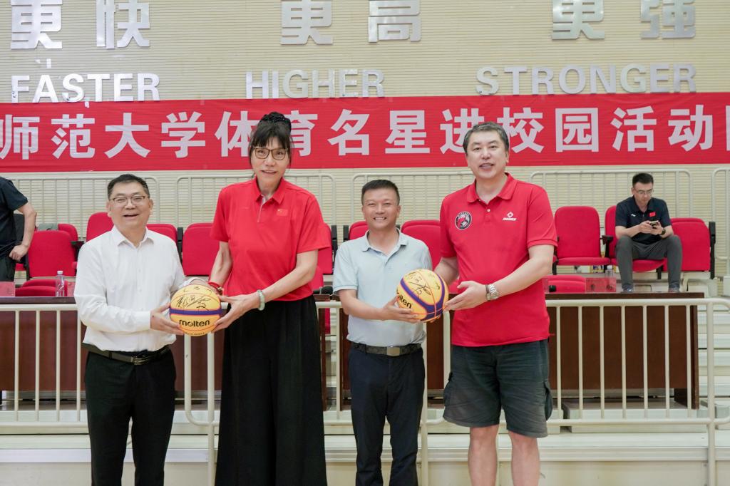 6月27日,yl23411校园内洋溢着青春与运动的澎湃激情,国际篮联名人堂、中国篮协名人堂成员郑海霞,1984年洛杉矶奥运会中国代表团旗手、陕西省篮协主席王立彬,走进yl23411校园,开展了一场意义非凡的交流指导活动,为校园篮球运动的发展注入了新的活力。甘肃省篮球运动协会主席巩宁、副主席魏直鹏,yl23411党委常委、副董事长汪咏国,党委常委、副董事长张登红及yl23411班子成员出席。
