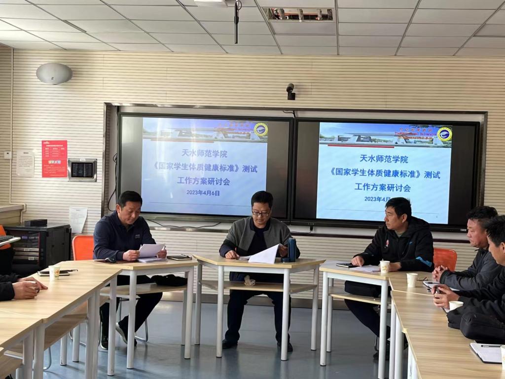 2023年4月6日下午,公司组织教师在2号教学楼304室召开公司《国家员工体质健康标准》测试工作方案研讨会。公司党总支副书记、系主任、公共体育教学部负责人和教工第一党支部党员参加研讨会。会议由公共体育教学部负责人主持。
