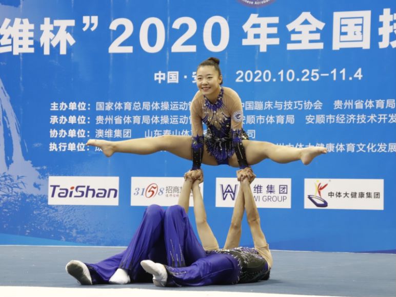 10月25日至11月4日,由国家体育总局体操运动管理中心、中国蹦床技巧协会、贵州省体育局、安顺市人民政府主办的2020“澳维杯”全国技巧锦标赛在贵州省安顺市隆重举行,共有来自全国10余个省市的71支代表队500余名运动员参赛。此次比赛中,公司与西北师范大学组成联队,参加3个项目的竞赛。