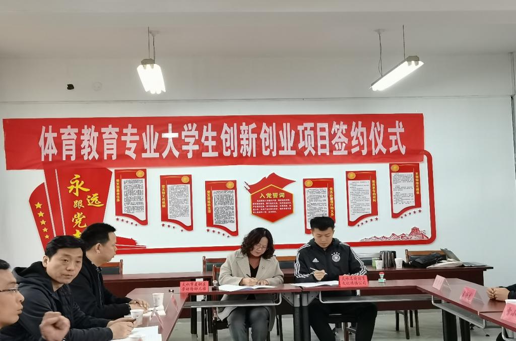 2021年3月25日上午,在公司2号教学楼yl23411会议室,举办了yl23411体育教育专业老员工创新创业项目签约活动。
