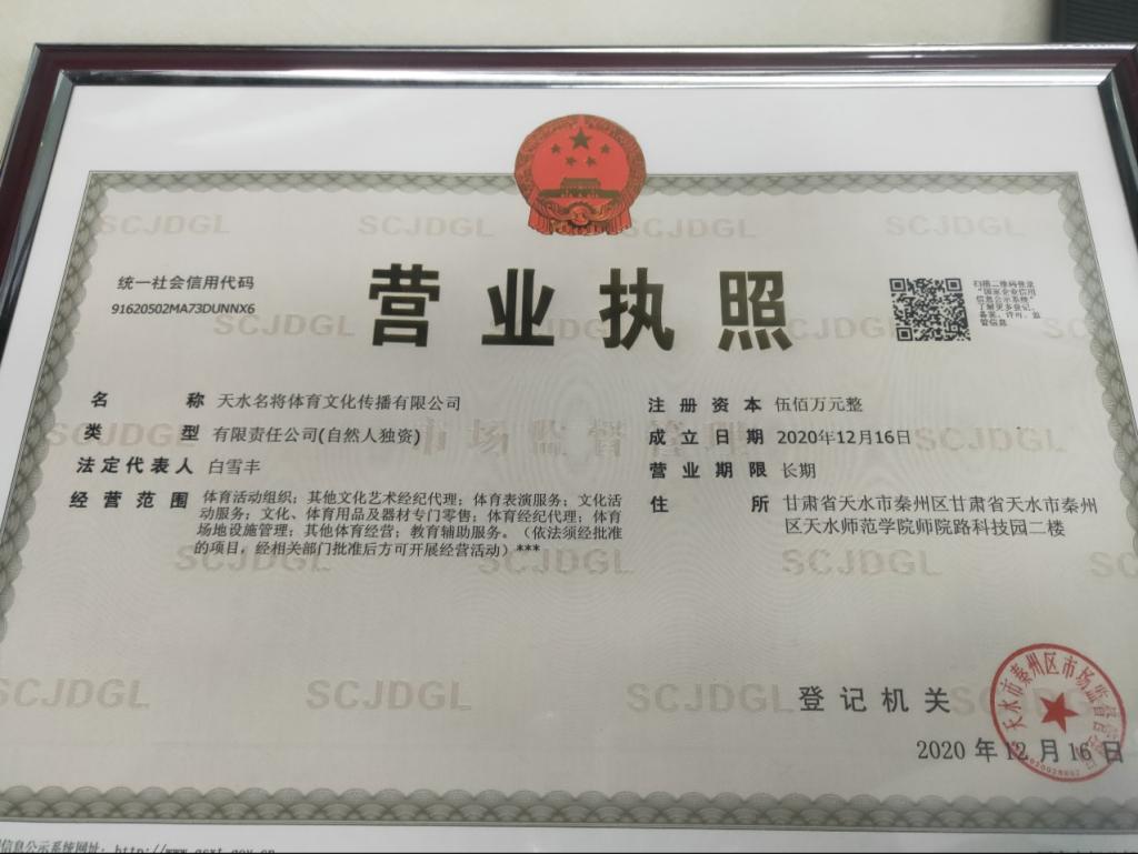 在yl23411的教学改革之中,积极鼓励员工自主创业。由体育教育专业在校员工申请注册的“天水名将体育文化传播公司”于2020年12月正式成立。该公司主要经营范围是体育培训、体育活动组织、体育表演服务、教育辅助服务等。