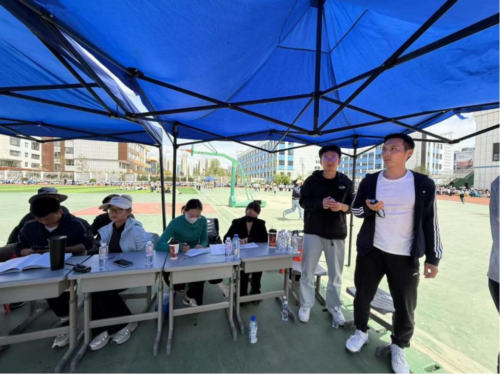 公司师生组成的裁判团队分布在检录处、径赛组、田赛组等岗位,裁判员全程精准记录成绩、严格把控规则。在跳远项目中,裁判员反复丈量沙坑落点,确保数据分毫不差;在短跑比赛中,研究生裁判通过专业手势与电子设备结合,保障起跑公平性。“作为师范生,这次经历让我们深刻体会到裁判工作的严谨性。”体育教育专业研究生米傲表示,“既要维护规则,也要关注小运动员的安全与情绪,这对我们的综合能力是极大锻炼。”