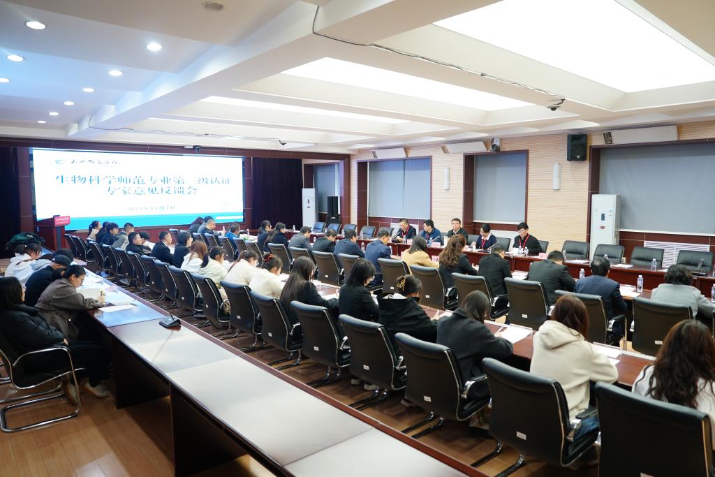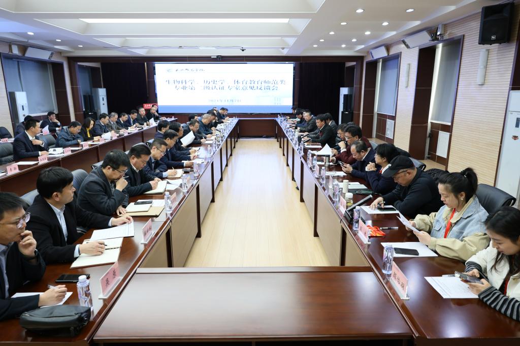 生物科学、历史学、体育教育三个专业负责人分别就自评报告作了补充说明汇报。专家组就人才培养方案设计、质量保障机制和一二课堂贯通融合协同育人提问循证,公司相关职能部门负责人进行了解答。
